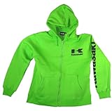 Kawasaki Logo Zip Front Hoodie, Green, Medium